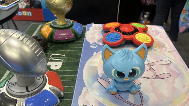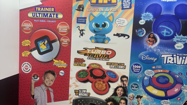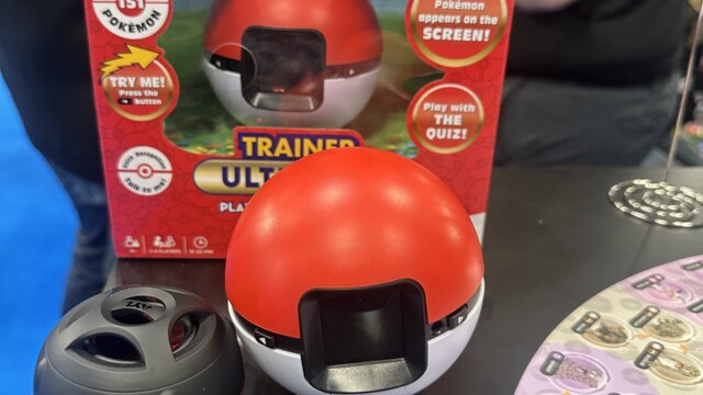 Ultra Pro, a company previously known primarily for Trading Card supplies, such as binders and sleeves, has grown by leaps and bounds over the last few years, ever branching out into board games. We stopped by their Toy Fair booth to see their latest offerings, which included several electronic trivia games, focusing on different sports, such as soccer and football, as well as a “2 minute trivia challenge”, that features questions from different categories. In addition, they are expanding their popular “Guessing Game” line to include a revised Pokémon Guessing Game, shaped like a pokeball with a new color screen, as well as an animal guessing game and a Disney Character guessing game.